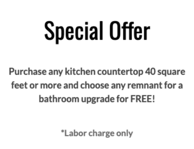 Purchase any kitchen countertop 40 square feet or more and choose any remnant for a bathroom upgrade for FREE!